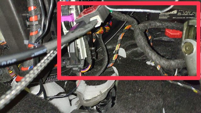 一開始重點就是要去找超鳥的網關,還好是同車系,花了一點時間,但還是找到安裝點。上面那個黑色盒子就是CAN Bus的樞紐,網路的中心Gateway網關,掌握了Gateway你就幾乎掌握了整台車的控制權。